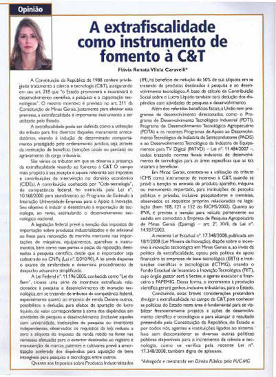 Ao trazer considerações sobre os benefícios fiscais da denominada LEI DO BEM – Lei nº 11.165/2005 – a sócia Flávia Vilela Caravelli trata do uso dos tributos de forma extrafiscal, qual seja, o uso que visa precipuamente induzir comportamentos do contribuinte. No caso em tela, a LEI DO BEM visa incentivar a realização de pesquisa e desenvolvimento de inovação tecnológica, colocando à disposição dos contribuintes uma série de benefícios fiscais. O artigo “A extrafiscalidade como instrumento de fomento à ciência e tecnologia” foi publicado na Revista Minas Faz Ciência, pág. 40, em fevereiro de 2008.