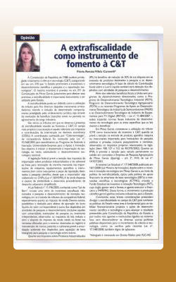 A extrafiscalidade como instrumento de fomento à C&T Sócia Flávia Vilela Caravelli publica o artigo “A extrafiscalidade como instrumento de fomento à ciência e tecnologia” na Revista Minas Faz Ciência, produzida pela FAPEMIG – Fundação de Amparo à Pesquisa do Estado de Minas Gerais.